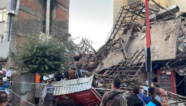 Yıkım sırasında henüz bilinmeyen nedenle bina iş makinesinin üzerine devrildi.