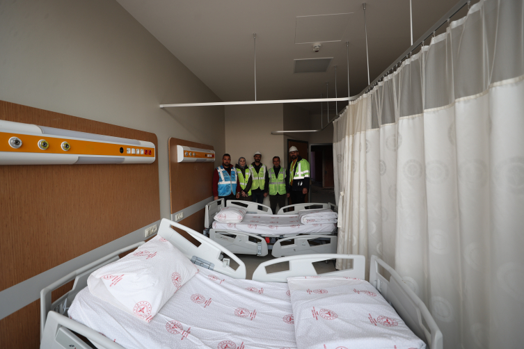 Hastalara beş yıldızlı otel konforunda hizmet sunacak hastanenin 2026 yılı sonunda hizmete açılması planlanıyor.