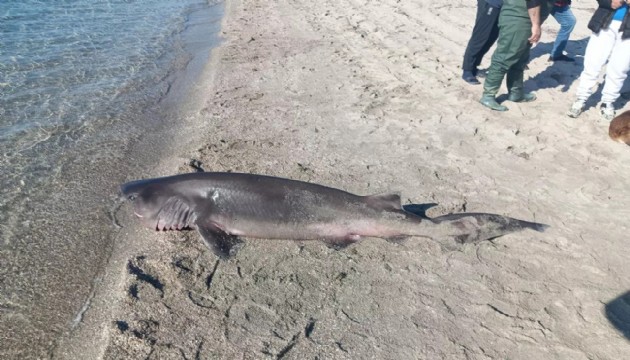 2 metre 66 santim uzunluğunda ve yaklaşık 200 kilo ağırlığındaki camgöz cinsi köpek balığı, belediye ekipleri tarafından sahilden alınarak başka bir alana gömüldü.