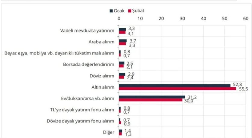 Şubat ayı anketine göre hane halkının gelecek 12 ay için yatırım tercihleri: