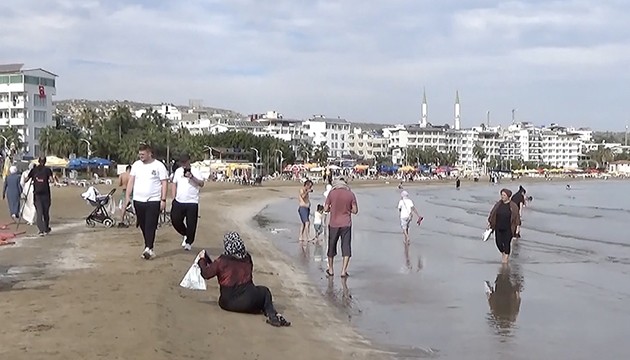Ziyaretçilerden bazıları kumsalda yürüyüş yaptı, bazı kişiler de denize girdi.