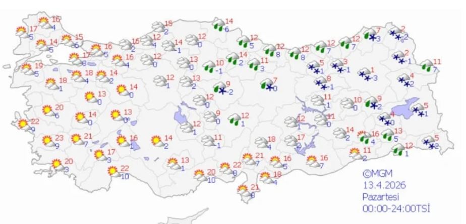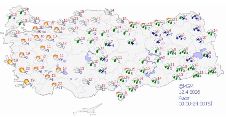 Meteoroloji Genel Müdürlüğü’nün (MGM) son verilerine göre, Türkiye'nin batı ve güney kesimleri nispeten daha güneşli ve ılık bir hava alırken, kuzey, doğu ve iç bölgelerde yağışlı ve serin bir sistem etkili oluyor.