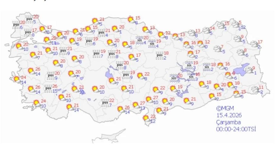 Sıcaklıkların genel olarak 15-22 derece civarında olacağı; değerlerin güneybatıda 24-26 dereceye varacağı değerlendiriliyor.