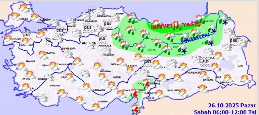 Doğu Karadeniz kıyıları ile Ordu çevrelerinde yerel olarak kuvvetli sağanak yağışlar etkili olacak. Yağış nedeniyle ani sel, su baskını, heyelan, yağış anında kuvvetli rüzgar ve ulaşımda aksamalar gibi olumsuzluklara karşı dikkatli olunması gerekiyor.