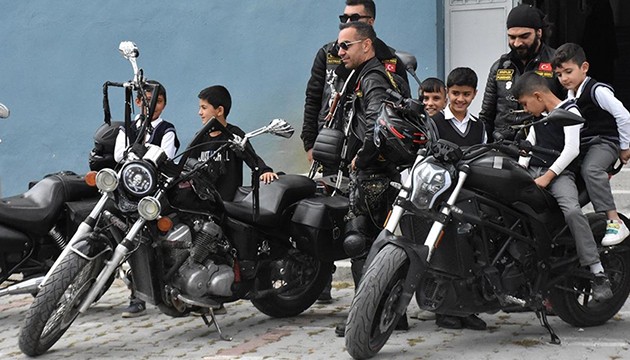 Araçlarına bindirdikleri çocuklara motosiklet heyecanı yaşatan gönüllüler, oyunlarla eğlendirdikleri öğrencilerle bolca fotoğraf çektirdi.