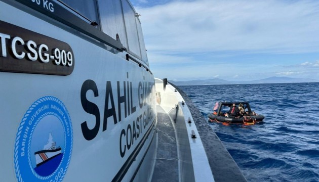 Ekipler, lastik bottaki 7'si çocuk 26 düzensiz göçmeni kurtardı.