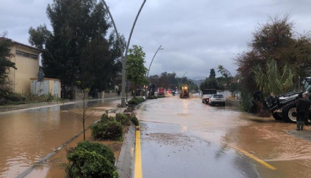 Muğla'nın Datça ilçesinde etkili olan sağanak yağış, hayatı olumsuz etkiledi. Yoğun yağış sebebiyle Reşadiye Mahallesi ile İskele Mahallesi arasındaki karayolunda ise rögar taşkını meydana geldi. Yaşanan taşkın sebebiyle karayolu adeta göle dönerken, yolda kalan araçlar da uzun kuyruklar oluşturdu. İki mahalle arasında bulunan karayolunun trafiğe kapatılmasının ardından, yolun açılması ve rögarların temizlenmesi için ekipler seferber oldu. Çevredeki bazı işyerlerinde de su baskınları yaşandı. Karayolu ve çevredeki işyerlerinde biriken suların tahliye edilmesi için çalışma başlatılırken, ilçe genelinde bazı mahallelerde de su baskınlarının yaşandığı öğrenildi. Bölgede çalışmalar sürüyor.