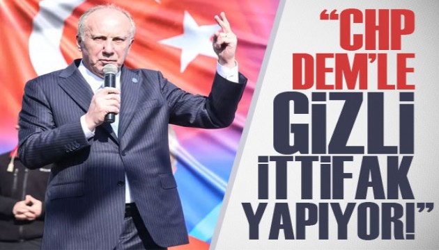 CHP ve DEM Parti'yi "gizli ittifak" yapmakla eleştiren İnce, "Mersin'de, Esenyurt'ta yapıyorlar. Hem gizli nikah kıyıyorlar hem de nikahı inkar ediyorlar. Gizli ittifak yapıyorlar." diye konuştu.