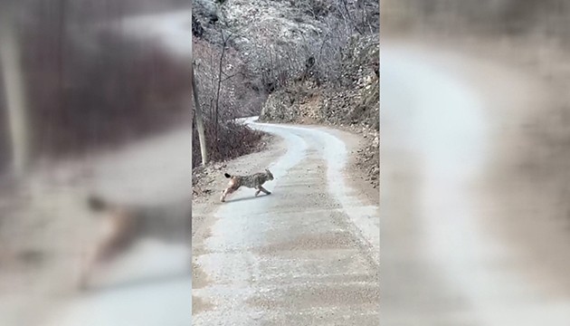 Otomobilden inen vatandaş, cep telefonu kamerasıyla vaşağı kayıt altına aldı.