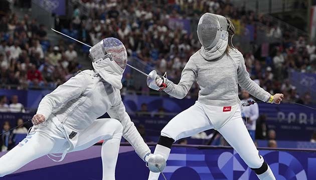 Grand Palais'te yapılan kılıç müsabakalarında Nisanur Erbil, son 32 turunda ABD'li Magda Skarbonkiewicz'le karşı karşıya geldi.