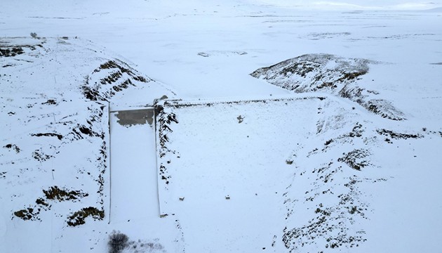 Sıcaklığın zaman zaman sıfırın altında 20 dereceye kadar düştüğü bölgede, Çat ile Palandöken ilçeleri arasında yer alan barajın yüzeyi de buzla kaplandı.