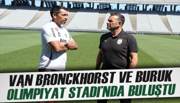 Galatasaray Teknik Direktörü Okan Buruk ile Beşiktaş Teknik Direktörü Giovanni van Bronckhorst, derbi öncesi karşılaşmanın oynanacağı Atatürk Olimpiyat Stadı'nda buluştu.