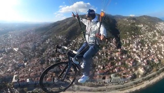 Önceden prova yaptığı için yamaç paraşütü sırasında bisikletiyle sorunsuz şekilde havada kalmayı başardığını dile getiren Şahin, kendisini görenlerin çok şaşırdığını kaydetti.