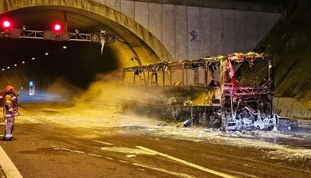 İstanbul-İzmir otoyolunda Kocaeli'den Bergama'ya hareket eden Mürsel Duran yönetimindeki 41 ACR 055 yolcu otobüsü, Orhangazi Tüneli girişinde henüz belirlenemeyen nedenle alev aldı.