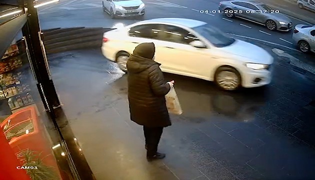 Dereağzı Mahallesi'nde otomobilinden indikten sonra fırından alışveriş yapan sürücü, tekrar aracına bindi. Sürücü, çalıştırdığı otomobille 4-5 basamaklı merdiveni inerek yaya yoluna girdi.