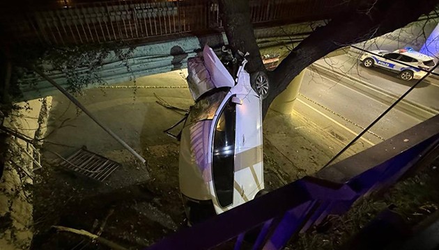 Kazaya karışan otomobil ise yaklaşık bir saat süren çalışmanın ardından çekici ve vinç yardımıyla viyadükte sıkıştığı yerden çıkartıldı.