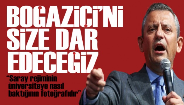 Boğaziçi Üniversitesi’nde akademisyenlerin görevlerine son verilmesi, mezunların ve emekli öğretim üyelerinin kampüse girişlerinin engellenmesi gibi uygulamaları da eleştiren Özel, "Bu kayyuma da bu kayyum rejimine de, bu saray rejimine de bu yaptıklarını yanına bırakmayacağız. Boğaziçi'ni de Türkiye'yi de size dar edeceğiz. Hodri meydan." ifadelerini kullandı.