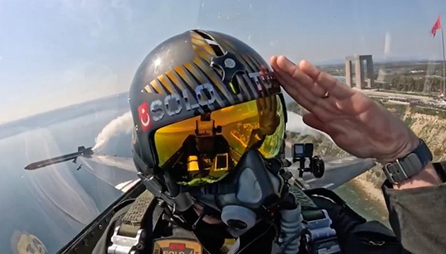 Uçuşa ait kokpit görüntülerin paylaşıldığı MSB'nin sosyal medya hesabında, "18 Mart Şehitleri Anma Günü ve Çanakkale Zaferi'nin 109'uncu Yıl Dönümü dolayısıyla gerçekleştirilen törenlerde, Hava Kuvvetlerimizin SOLOTÜRK ekibi de gösteri uçuşu yaptı." ifadeleri kullanıldı.