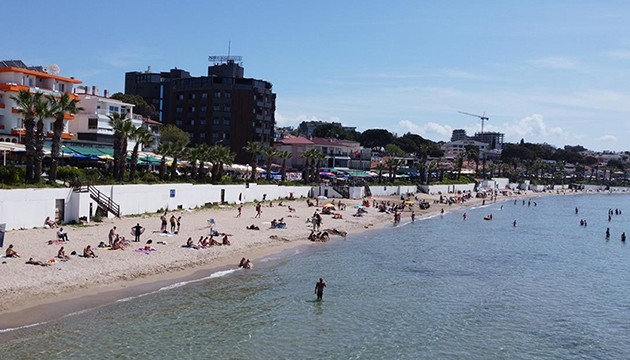 Kadınlar Denizi Plajı'nda yoğunluk oluşturan ilçe sakinleri ve turistler, denize girerek sahillerde zaman geçirdi.