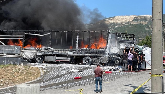 Çarpışmanın ardından 3 tırda yangın çıkarken, kaza yerine polis, itfaiye ve sağlık ekipleri sevk edildi.