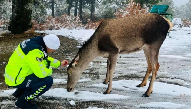 Karla kaplı ormandan çıkan geyiklerden biri, güzel görüntü oluşturdu. Görüntüler, DKMP 6. Bölge Müdürlüğü ekiplerince sosyal medya hesaplarından paylaşıldı.