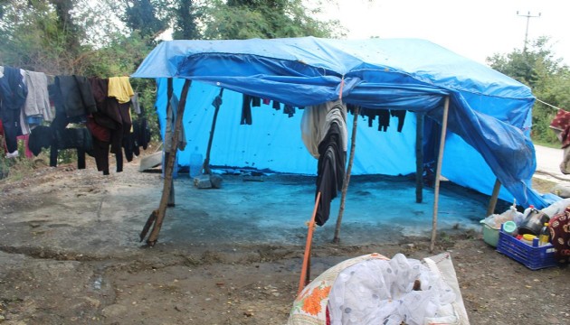 Mevsimlik tarım işçisi Zekiye Gezici, Kocaman Mahallesi'ne fındık toplamak için Gaziantep'ten ailesi ile geldiklerini belirterek, "Depremi yaşadık, burada da böyle bir mağduriyet yaşadık ve çadırlarımız su altında kaldı. Buraya fındık toplamak için geldik ancak çalışamadık. Çadırlarımızı, eşyalarımızı su bastı" dedi.