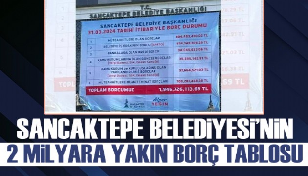 15 yıl boyunca AK Parti'nin yönettiği ve son seçimde CHP'ye geçen Sancaktepe Belediyesi'ne ait borç tablosu belediye binasına asıldı. Belediyenin yaklaşı 2 milyar lira borcu olduğu ortaya çıktı.