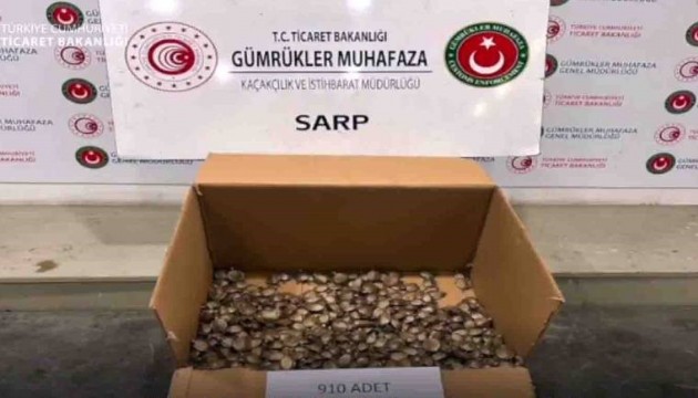 Taramada şüpheli yoğunluk tespit edildi. Sarp Gümrük Muhafaza Kaçakçılık ve İstihbarat Müdürlüğü ekiplerince gerçekleştirilen detaylı aramalarda değeri 655 milyon Türk lirası olan 910 su kaplumbağası ele geçirildi.