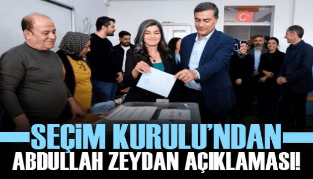Van İl Seçim Kurulu Başkanlığı, Halkların Eşitlik ve Demokrasi Partisi (DEM Parti) Van Büyükşehir Belediye Başkan Adayı Abdullah Zeydan'ın "seçime yeterliliği olmadığı" gerekçesiyle "seçilmemiş sayılmasına" ve sonraki en çok oy alan ve seçilme yeterliliğine sahip ikinci sıradaki adaya mazbatanın teslim edilmesine karar verdi.