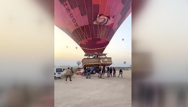 Pilotun tekrar ateşleme yapmasıyla yükselen sıcak hava balonu farklı bir noktaya güvenli iniş gerçekleştirdi.