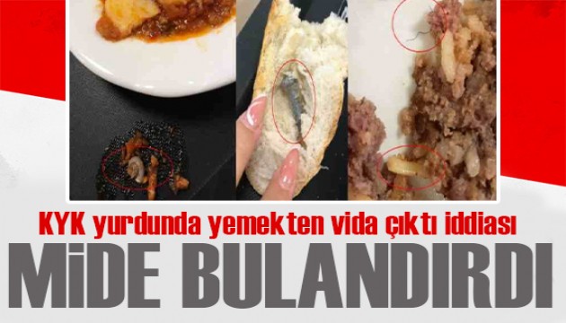 Denizli'nin Pamukkale ilçesinde bulunan bir KYK yurdundaki yemekhane koşulları hakkında sağlığı tehdit edecek hijyen açığı sosyal medyada gündem oldu. Bir öğrenci, sosyal medyada paylaştığı fotoğraflarda ekmeklerin içinden vida, sulu yemeklerden ise kıl, kurt ve salyangoz çıktığını gösterdi.