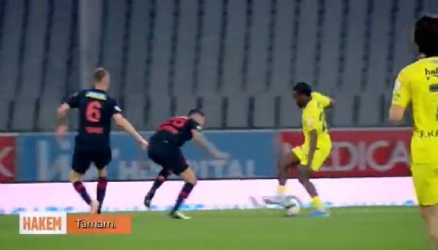Karşılaşmanın 86’ncı dakikasında sağ kanattan topla birlikte ceza sahası içerisine giren İrfan Can Kahveci’ye Eysseric müdahale etti. Pozisyonun devamında karşılaşmanın hakemi Tugay Kaan Numanoğlu, önce pozisyonu penaltı olarak değerlendirdi. Ardından VAR’dan gelen uyarı sonrası pozisyonu izlemeye gitti. Pozisyonu izleyen Tugay Kaan Numanoğlu, penaltıyı iptal etti.