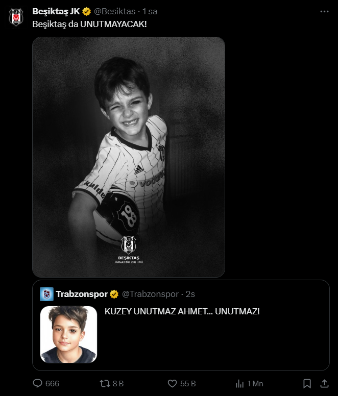 Son olarak Fenerbahçe ise paylaşımında "Hiçbirimiz unutmayız... Fenerbahçe de unutmaz, Ahmet" ifadelerini kullandı.