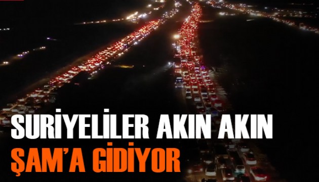 Şam'a doğru yola çıkan Suriyeliler, kent çevresinde yoğun araç trafiğine neden oldu. Yollarda oluşan uzun araç kuyrukları dron ile görüntülendi.