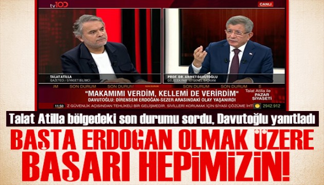 Gelecek Partisi lideri Ahmet Davutoğlu, tv100 ekranlarında Gazeteci Talat Atilla'nın sorularını yanıtladı.