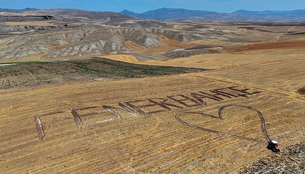 Kayaağzı köyünde ailesiyle birlikte çiftçilik yapan 24 yaşındaki veteriner teknikeri Bilal Yeşil, çocukluğundan beri gönül verdiği Fenerbahçe’nin adını traktörle tarlasına kazıdı.