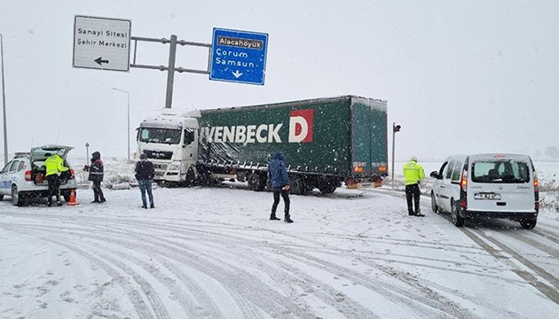 Abilov Abil (56) idaresindeki 99-OZ-139 Gürcistan plakalı patates yüklü tır, Çorum-Yozgat kara yolu, Alaca ilçesi girişinde makas attıktan sonra refüje çarptı.
