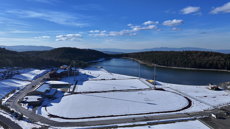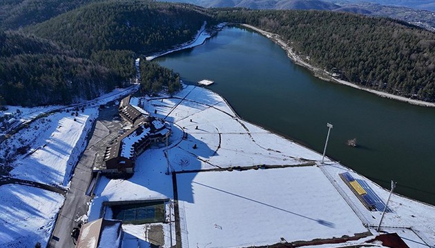Güneşin de yüzünü gösterdiği yayla ve çevresinin karla kaplı görüntüsü havadan görüntülendi.