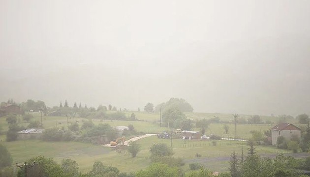 Öte yandan araçların üzeri, evlerin balkonları tozla kaplandı.