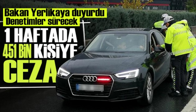 İçişleri Bakanı Ali Yerlikaya, 21-28 Kasım tarihleri arasında 2 milyon 579 bin 204 aracın denetlendiğini ve 451 bin 675 araca/sürücüye işlem yapıldığını duyurdu.