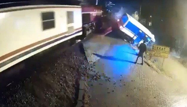 Karşıya geçemeyen minibüse, Kırıkkale-Kars seferini yapan yolcu treni çarptı.
