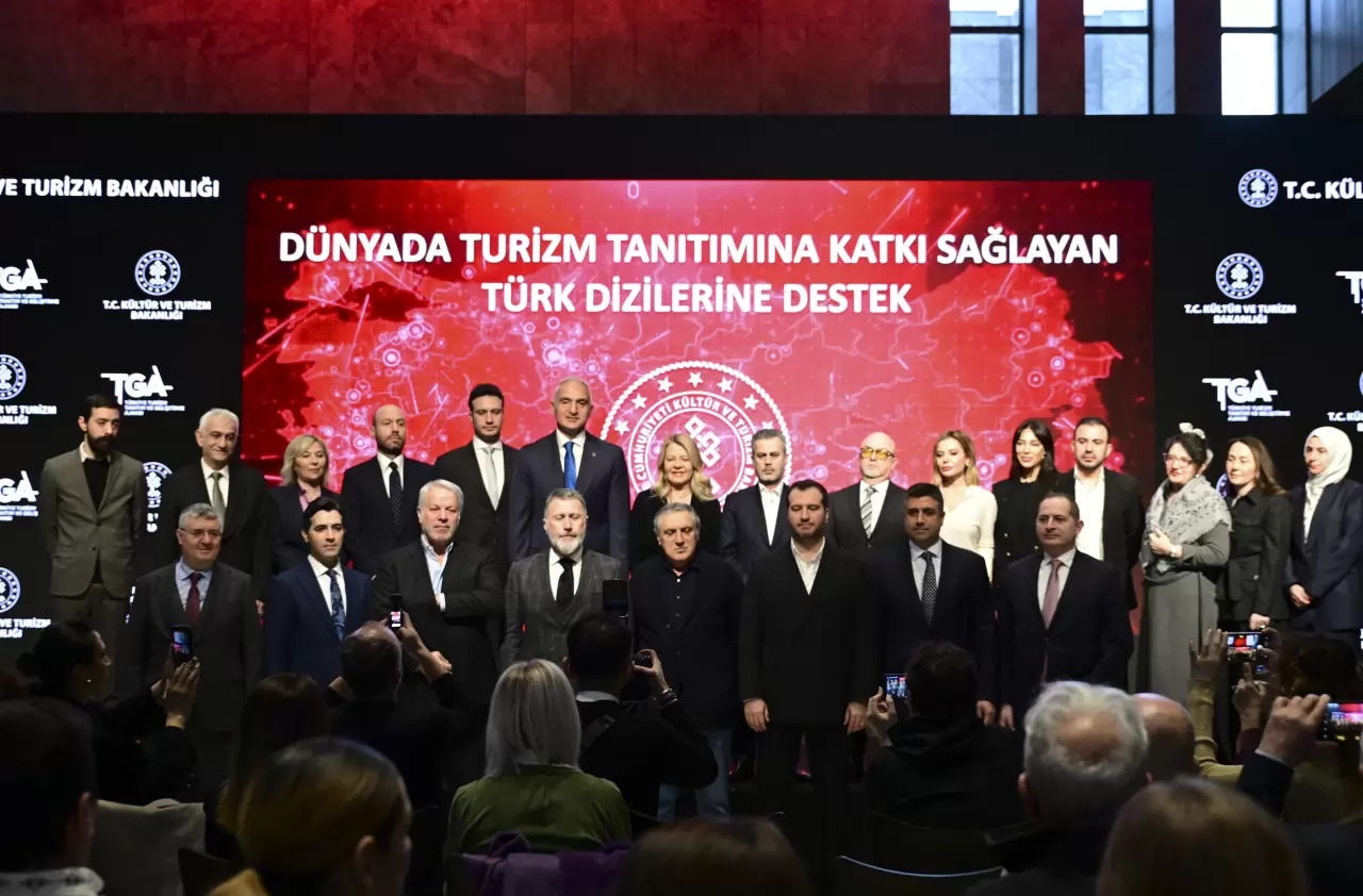 Kültür ve Turizm Bakanı Mehmet Nuri Ersoy, İstanbul Atatürk Kültür Merkezi’nde düzenlediği basın toplantısında Türk dizilerinin yakaladığı başarı sayesinde Türkiye’nin dünyanın en çok dizi ihraç eden ülkeleri arasında yer aldığını belirterek Türk dizilerini tanıtım ve turizm stratejisinin merkezine alan yeni vizyonlarını ve bu doğrultuda atmayı planladıkları adımları kamuoyuna açıkladı.