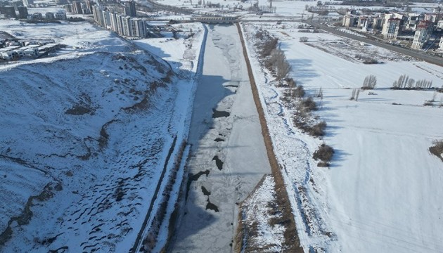 Tarihi Eğri Köprü civarındaki bölümünde nehrin yüzeyi tamamen donarken, Kesik Köprü civarında ise akışın olduğu ancak buz kütlelerinin oluştuğu görüldü. Buz tutan nehir dronla görüntülendi.