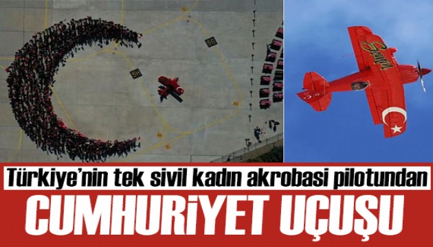 Saygı duruşunda bulunulması ve İstiklal Marşı'nın okunmasının ardından başlayan programda, Türk bayrakları taşıyan çok sayıda katılımcı, Şener'in 400 beygir gücündeki "Pitts S2S Experimental" uçağının çevresinde hilal şekli oluşturacak şekilde dizildi. Yıldız noktasını ise bu akrobasi uçağı oluşturdu.