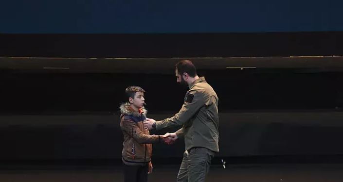 Duygu dolu anların yaşandığı törende bir görüntü, yaşananları bir kez daha gözler önüne serdi.