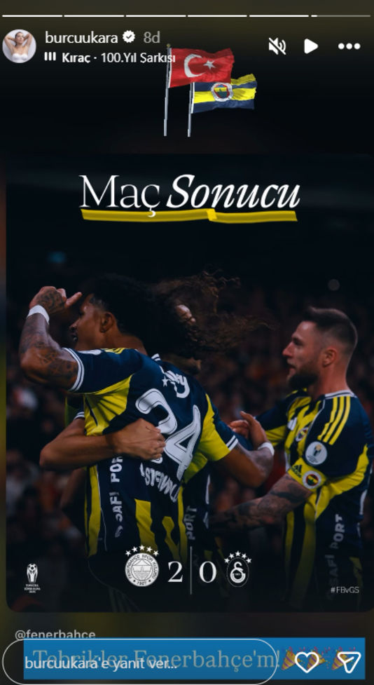Süper Kupa finalinde Galatasaray ile Fenerbahçe karşılaştı. Heyecan dolu maçta sarı-lacivertliler ezeli rakibini 2-0 mağlup ederek kupaya ulaştı. Ünlü isimler maçın ardından sevincini sosyal medyada paylaştı.