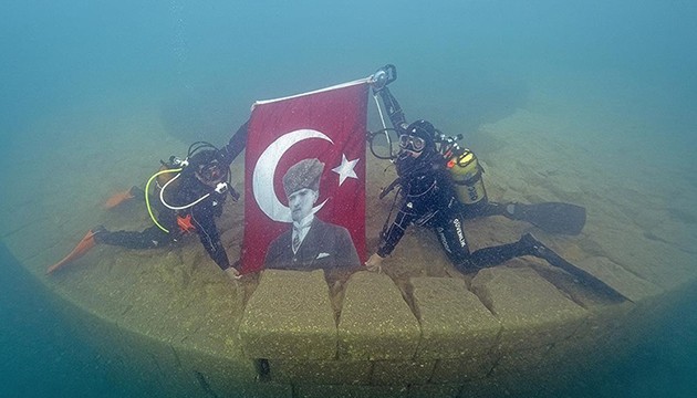 Ceylan ve ekibi, 29 Ekim Cumhuriyet Bayramı etkinlikleri kapsamında Van Gölü'nde dalış gerçekleştirdi.