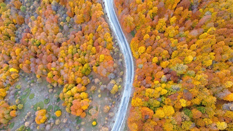 Bölgeden geçen sürücüler ise ağaçlarla kaplı yolda sonbaharın renkleri eşliğinde yolculuk yapma imkanı buldu.